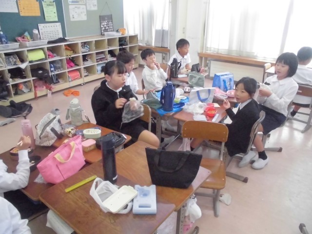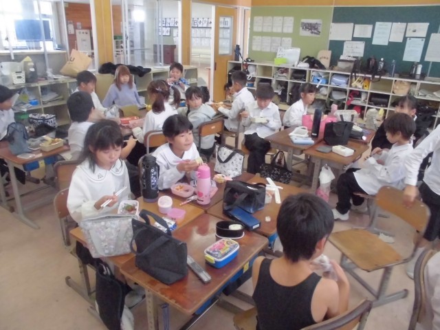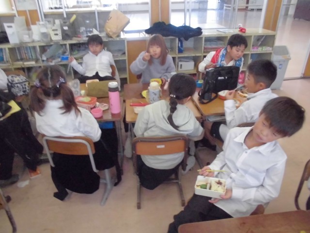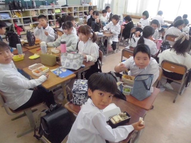 音楽会に向けて、保護者の皆さんに作っていただいたお弁当を食べて英気を養いました。友達のお弁当を恨めしそうに見たり、自分のお弁当を自慢したりと、リラックスして雰囲気で昼食をとりました。