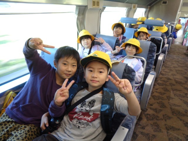 行きの電車は、2階建て車両がある電車でした。迷わず2階席に向かう子どもたち。少し贅沢な気分を味わうことができました。