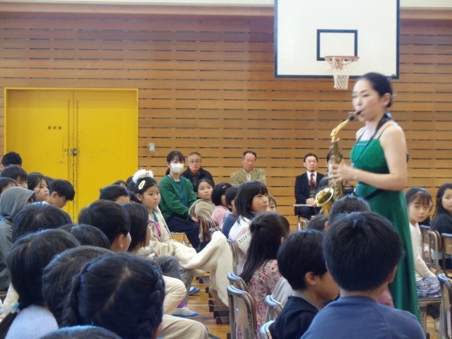 ピアノ、フルート、サクソフォンの楽器について説明してもらうと、「聴く」だけでなく、「見る」という楽しみもできました。