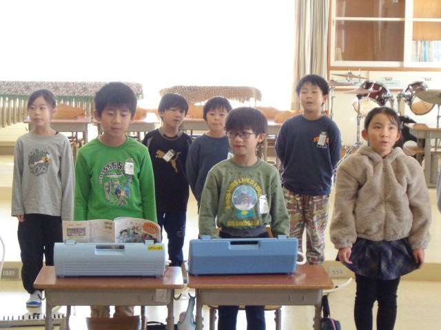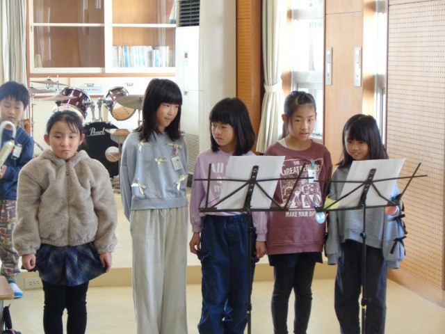 職員室の先生方や5年生を招待して、音楽で学習したことを発表するミニコンサートを開きました。
