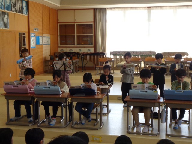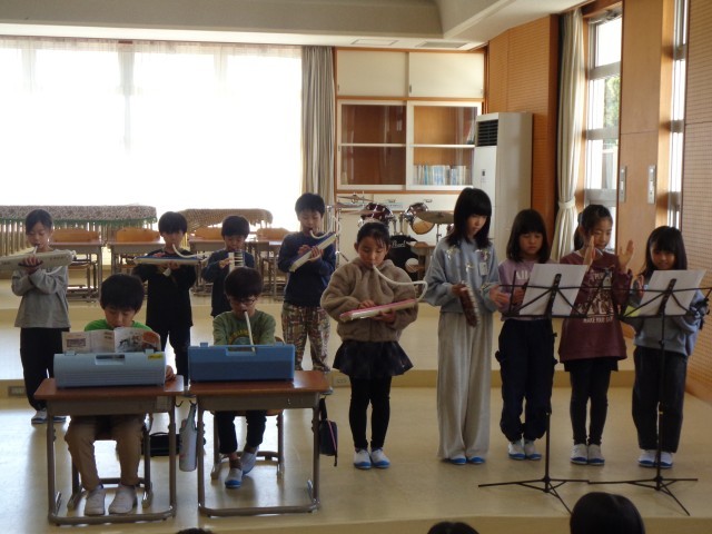 「ドレミのうた」の合唱と、「山のポルカ」の合奏を披露しました。