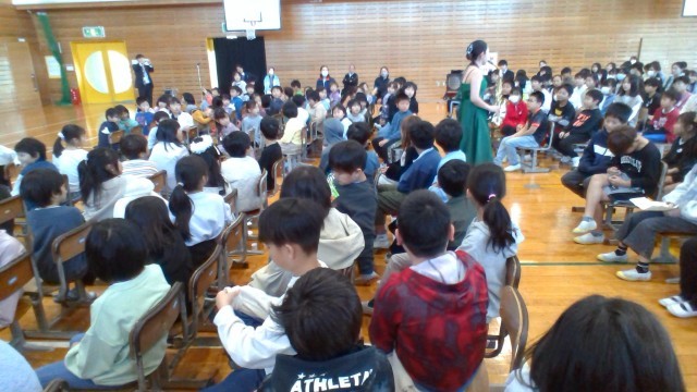プロの演奏家の方を招いて、音楽会を開きました。子供たちは楽器の説明を聞くとともに、音楽に聴き入っていました。曲に合わせて体を動かし、ノリノリの子供たちでした。