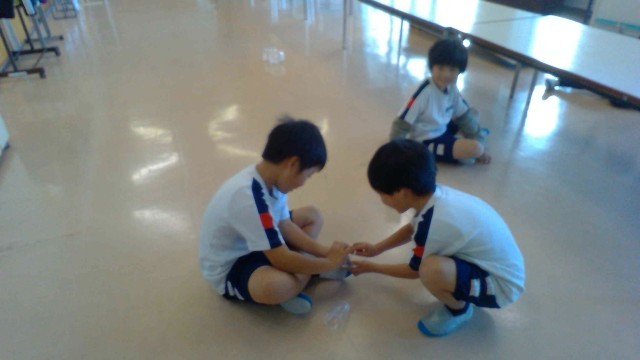 家庭で集めていただいた廃材も活用しながら、どんどんつくっています。つくり方が分かってくると、「一緒につくろう」と声をかけ合い、友達と協力したり、遊び方を工夫したりする様子が出てきています。