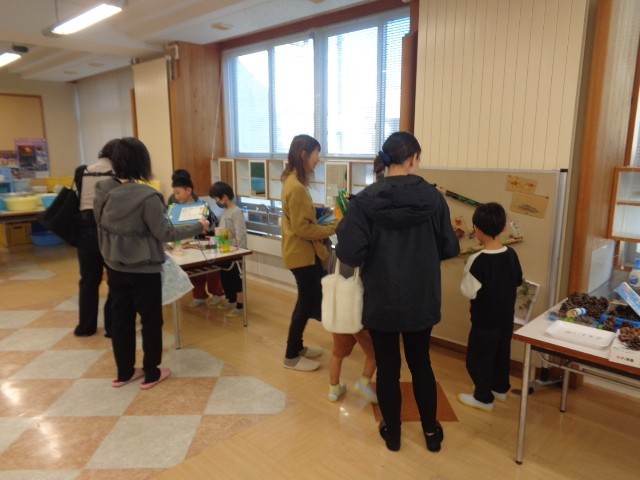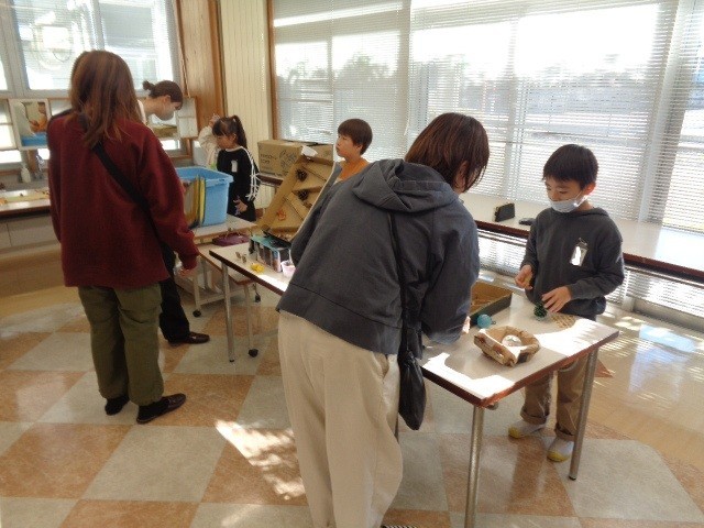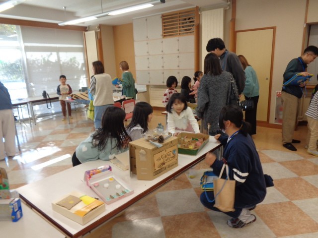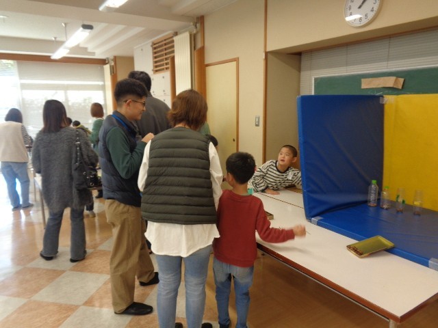 学習参観では、生活科で準備してきた「あきのにこにこランド」にお家の方を招待しました。始まるまでは、緊張している様子でしたが、活動が始まると、分かりやすく説明したり、大きな声で呼びこみをしたりしました。お家の方にたくさん遊んでもらえて、「嬉しかった」「楽しかった」と笑顔いっぱいの子どもたちでした。来週は、他の学年の友達を招待する予定です。