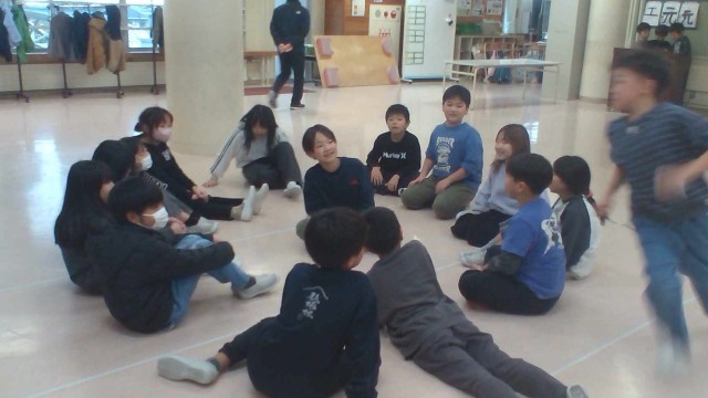 男女仲良く「はんかち落としをしよう!」と声をかけ、楽しく過ごしていました。