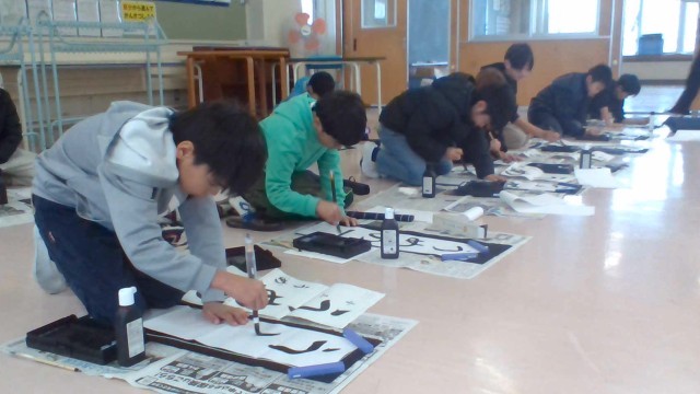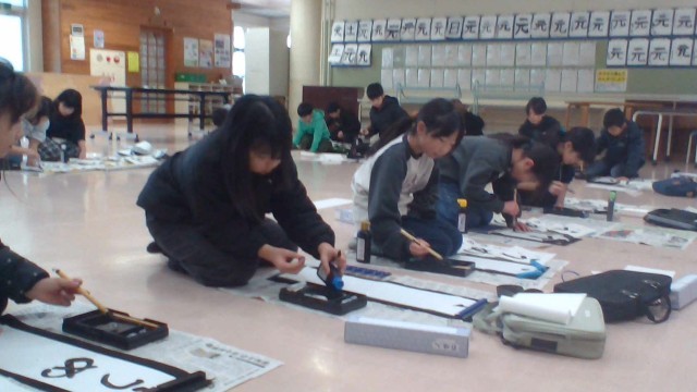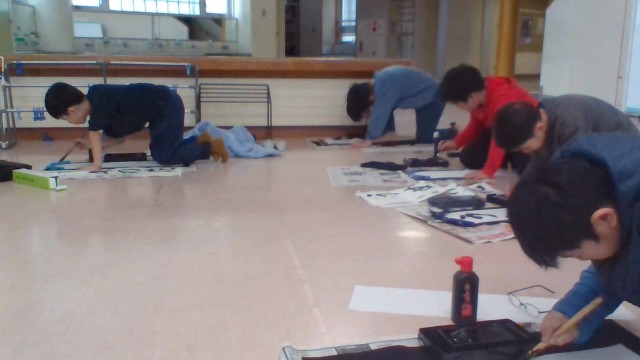 書き初め大会では、冬休みにたくさん練習してきた成果を発揮し、集中して取り組みました。