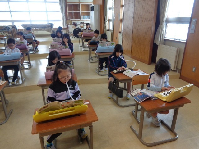 音楽科では、鍵盤ハーモニカできらきらぼしを演奏したり、四季の様子を思い浮かべながら歌ったりしました。曲を聴いて感じ取ったことをを身体で表現しながら楽しみました。