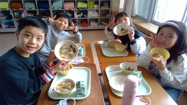 国語の給食は、2年生で学習した「スイミー」のスイミー丼でした。魚の形にくりぬかれた赤い人参を見つけ、「スイミーがいる!」と大喜びの子供たちでした。