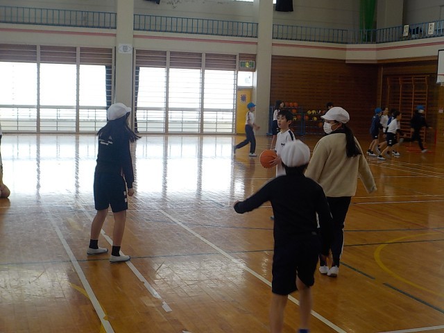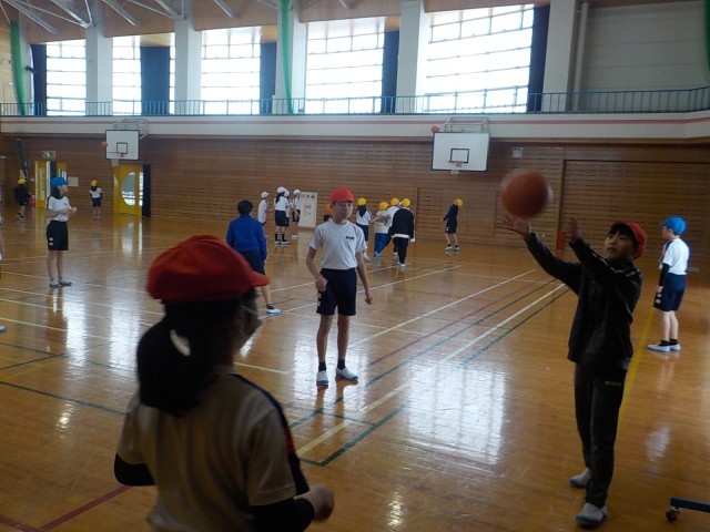 体育科では、「シートバスケットボール」をしています。相手の取りやすいところへパスを出したり、味方がパスを出しやすいように動いたりするなど、得点ををとるために考えてプレーをする姿が見られます。