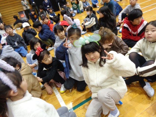 1限に行う保健委員会主催の「風邪に負けるな!寒さなんかふきとばそう集会」の中で、ジャンボリーミッキーのダンスを楽しむため、家庭からカチューシャや被り物等を持ってきたのです。
