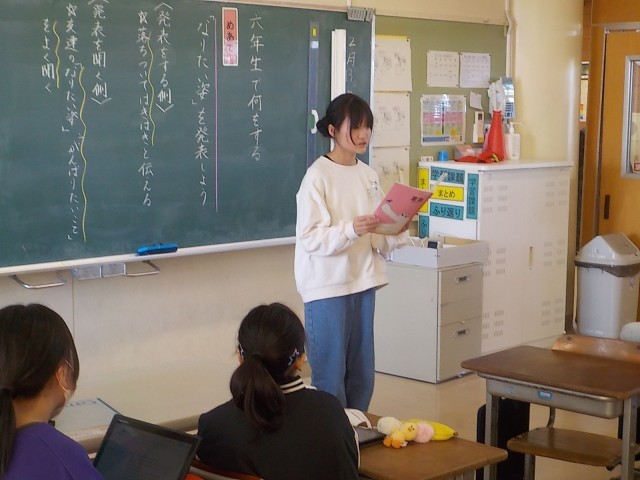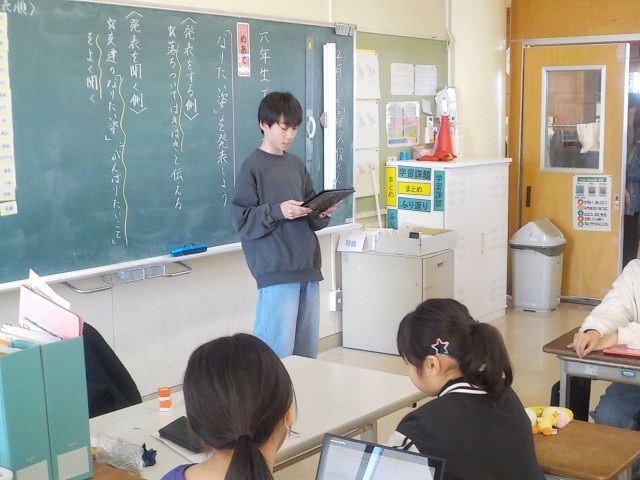 国語科「6年生で何をする」の学習では、来年度、6年生になったときにどのような姿になりたいか具体的に想像して、スピーチ発表をしました。文章の構成を考えたり読み方や速さを意識したりするなど、子どもたちは様々な工夫をしました。今日は、保護者の前での発表で緊張しながらも堂々と発表する姿が見られました。