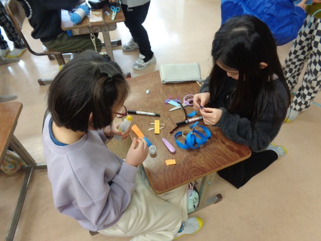 図画工作科では、自分のすきまちゃんをつくって、いろいろなすきまに置きました。すきなちゃんが好きそうなすきまをたくさん見付けることができました。友達同士で探し合いっこをして楽しみました。