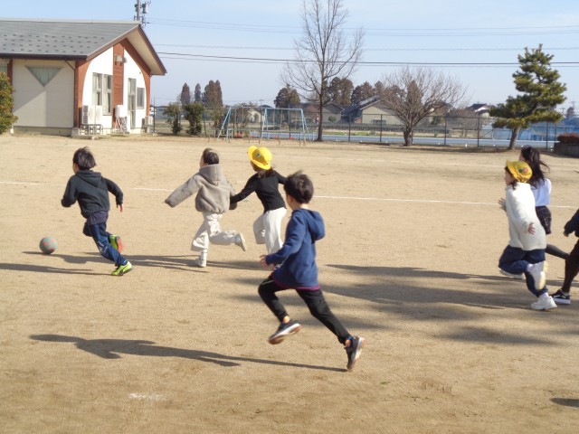 この企画の実行委員が準備をし、全員でサッカーをしました。子供たちは、元気いっぱいにボールを追いかけて走り回りました。天気もとてもよく、長い飛行機雲を見つけ、みんなで空を見上げる場面もありました。