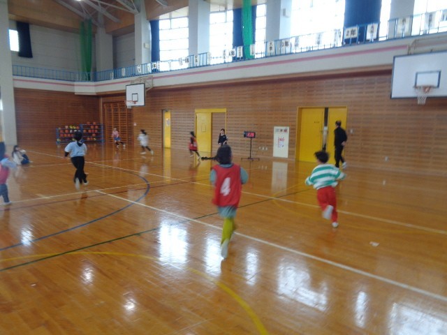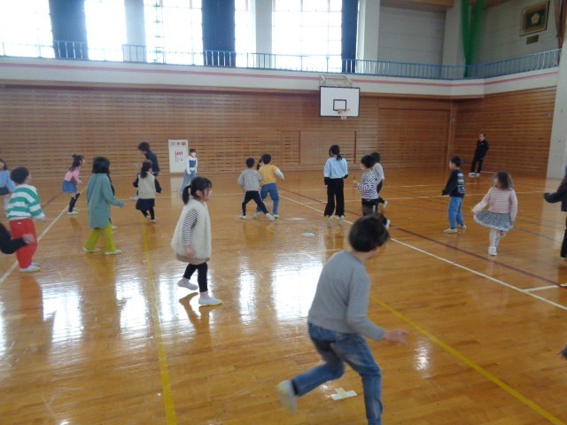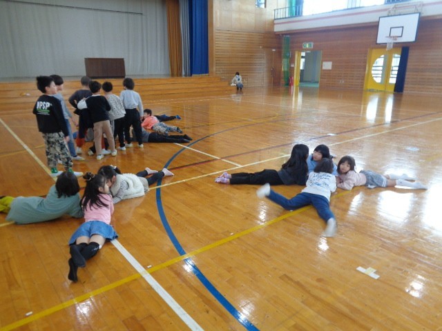 今日は1年生最後の集会でした。まずは、体育館で転がしドッジボールや鬼ごっこなどを楽しみました。思い切り身体を動かして、元気に活動しました。