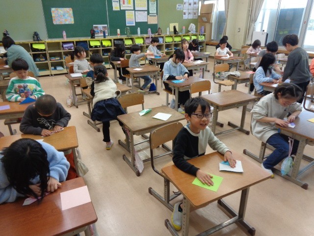 教室では、シルエットクイズやリズムゲーム、いすとりゲームや折り紙をしました。各係で計画を立て、スムーズに進行しました。工夫して今までしたことのないいろいろな活動を行うことができました。2年生もみんなでなかよく活動できるといいですね。