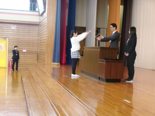 1年間の締めくくりとなる修了式を行いました。1年間の成長を実感できるような式になりました。修了証を受け取る代表に合わせてきちんと礼をしていました。