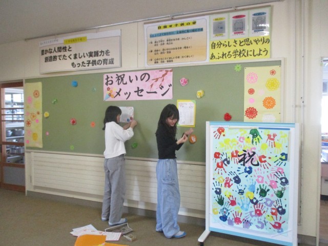 6年生になって1つ目の仕事として、明日の入学式の準備を行いました。自分から仕事を探したり、先生に確認したりしながら自分の役割を全うする子供たちの姿が見られました。