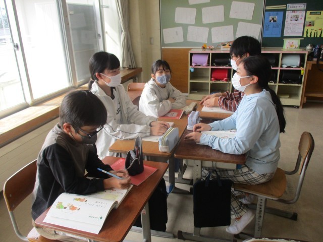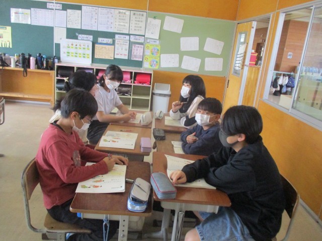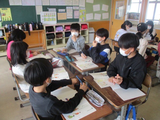 国語科の学習では、みんなで一文ずつ考えてお話を作っていきます。「明日は誕生日です」からはじまり、「〇〇ということに気が付きました」に繋がるように考えます。途中ですごい展開になったり、ラストに面白いおちがついたり、楽しい時間でした。