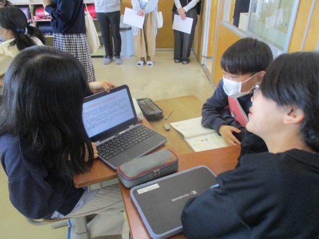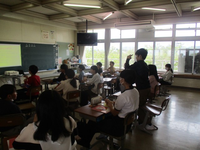 4月25日(土)の学習参観では、「伝わるかな 好きな食べ物」という学習で、好きな食べ物の特徴や食感等を文章で伝え、クイズを作りました。見にきてくださった保護者の方にも出題しました。今日はその続きをして、友達の作った文の表現のよさを見つけたり、クイズを楽しんだりしました。