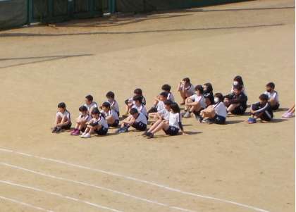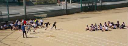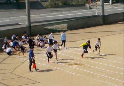 グラウンドでは5・6年生が100m走を行っていました。