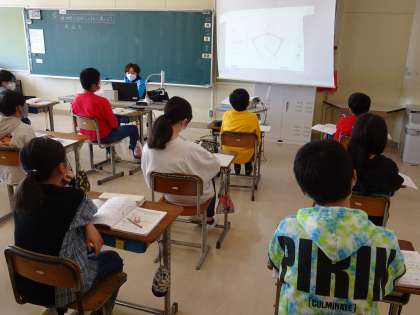 手元に線対称な形の図形をもち、実際に重ねてみて考えました。