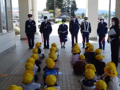 大山交番の方や交通指導員のみなさんが来てくださいました。
