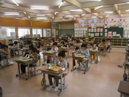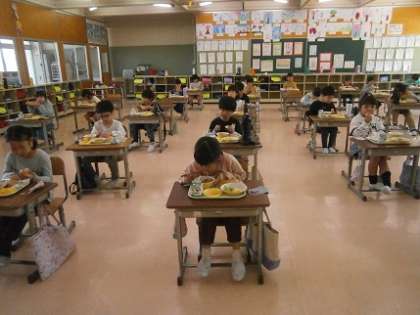 自分たちにできる感染症対策を考え、今日も給食の時間は、お話をせずに黙々とおいしい給食を味わって食べていました。