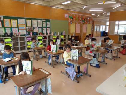 今日の国語の学習では、「はなのみち」を音読しました。くまさんの気持ちを考えながら、声の大きさや低さを工夫して音読しました。音読の姿勢もばっちりです。