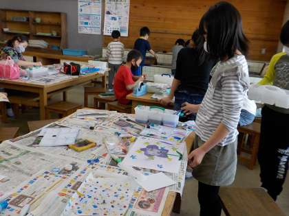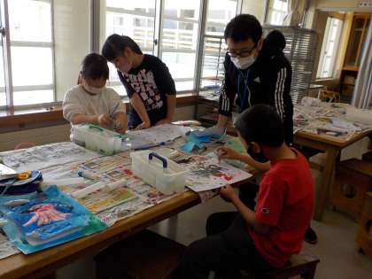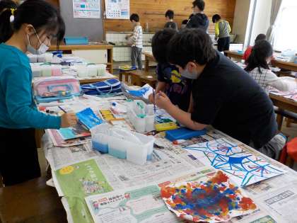 今日は、野村先生との学習でした。様々な技法を使って、自分の思いを表現していました。それぞれ個性あふれる作品に仕上がりました。