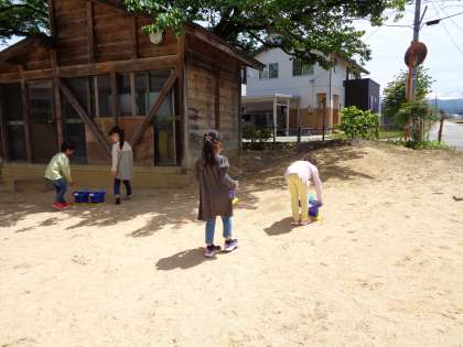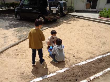 今日の生活の学習では、あさがおの鉢を動かしました。日当たりのいい場所、日陰、いろいろ考えながら動かしていました。どこが一番育つかな?