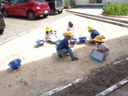 今日の生活の学習では、あさがおを観察しました。芽が出てきているものがたくさんあり、子供たちはとても嬉しそうでした。まだ芽が出ていない子供も、早く育ってほしいという思いをもって絵を描いていました。