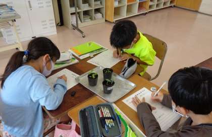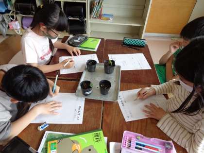 小さな芽を、一生懸命に観察し、丁寧に記録していました。