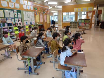 今日は、初めてのお話の会でした。いろいろな絵本の読み聞かせ手を真剣に聞いていました。これからもたくさんの絵本を読みましょう。