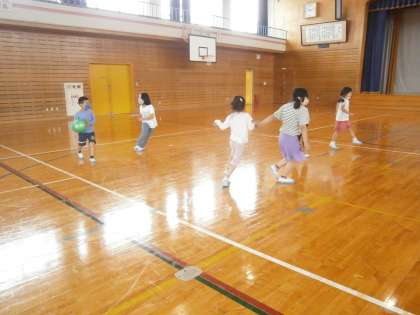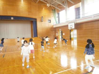 きょうのリフレッシュタイムは体育館で遊びました。精一杯走って、ころがしドッジやおにごっこを楽しんでいました。