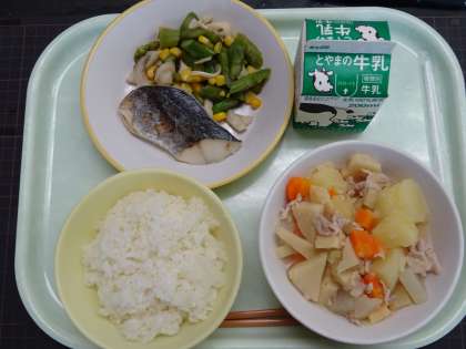 アスパラソテー、ジャガイモと豚肉の味噌煮込み