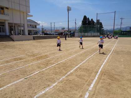 今日の体育では、ワザセブン「はしってあそぼう」の中から、30メートルを7秒で走ることに挑戦しました。最初は間に合わなかった子供たちも、何度も挑戦して、目標達成していました。金シール獲得です。