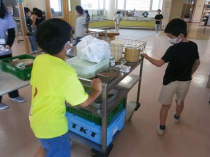 片付けの時には、2階から1階まで何往復もして食器を運んでいます。
