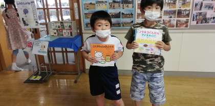 祝二人で100冊 公開日 2021/06/04 更新日 2021/06/04 全校 今年度の大庄小学校は、全校で読書に力をいれています。二人合わせて100冊読んだ記念日の子供たちです。達成感にあふれています。