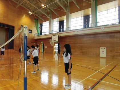 体育館も暑くなってきましたが、子供たちは、ますます元気に活動中です。バドミントン・ビーチボールクラブでは、相手とのラリーを練習中でした。少しずつつながる数も増えてきたかな?