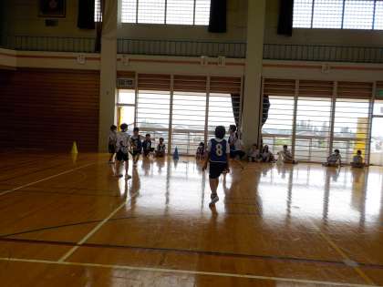 「フラッグフットボール」の学習では、投げてパスしてもよいというルールが加わり、走ってボールを運ぶだけでなく、パスをしてボールを運ぶという作戦を立てるチームも増えました。