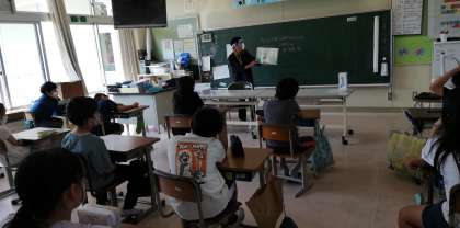今朝の、お話の会の方による読み聞かせの様子です。感染対策をとりながら、お話の世界を楽しみました。