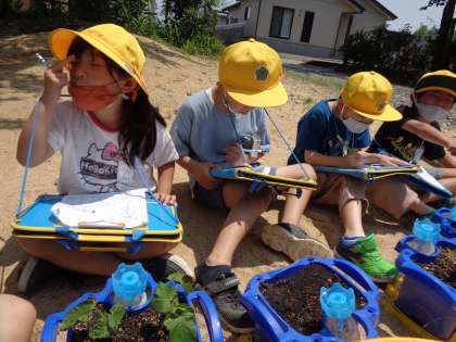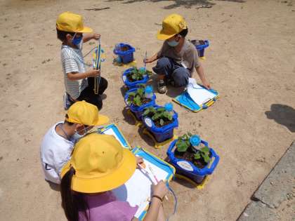 今日の国語は、あさがおを詳しく観察しました。形、大きさ、におい、さわり心地等に注目して、詳しく観察していました。上手に文章が書けるようになってきました。