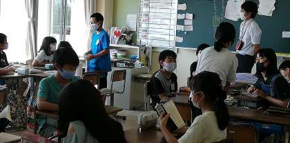 5年生の朝活動は、ビブリオバトルでした。グループで自分のおすすめの本を紹介し合います。どの子も友達の話にしっかり耳を傾けています。ほのぼのとした対話的な学習の時間でした。