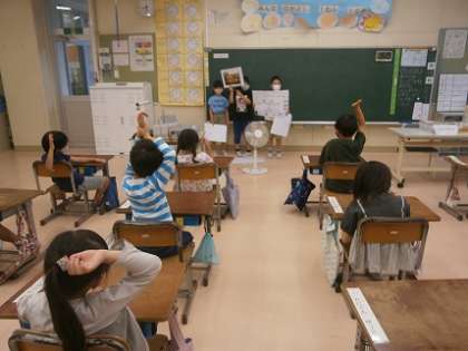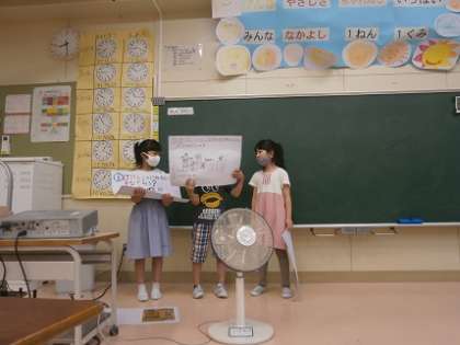 1年生に学校紹介を行いました。今日は、図書室と保健室のクイズをしました。保健の先生の名前のクイズや図書室にある本の冊数のクイズなどを出しました。1年生は真剣にお話しを聞いて、クイズに参加してくれていました。