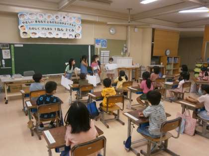 先週から、2年生がクイズ大会をしに来てくれています。学校のことをいろいろ調べて、クイズにして教えてくれます。答えが発表されると大盛り上がりです。明日のクイズも楽しみです。せいかつの時間には、2回目の学校探検の打ち合わせをしました。号車ごとに行きたい場所を決めて、今回はインタビューにも挑戦です。