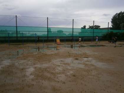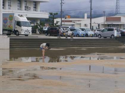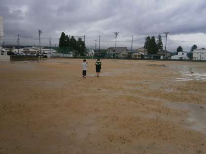 雨水がグラウンドのどこにできやすいか、クロムブックで写真を撮り、調べました。