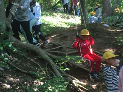 木の枝を上手に使ってブランコやターザンロープを作って遊びました。
