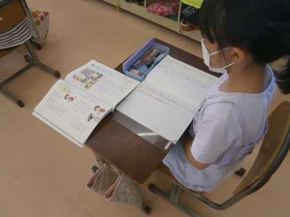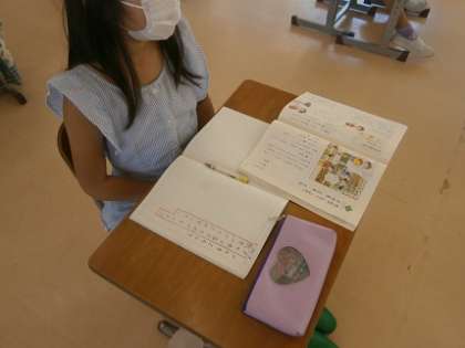 国語科の学習のときの机の上の様子を見てました。教科書、ノート、筆箱など必要な物がしっかり出ていて、学習に集中できる環境を自分で整えることができていました。