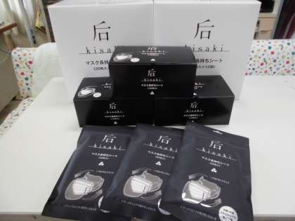 吉乃友酒造有限会社さんより、マスク長持ちシート「后−kisaki−」1200枚をご寄贈していただきました。このシートは、ウイルス等の付着が気になるときに、マスクの外側または内側に挟んで使用できるそうです。