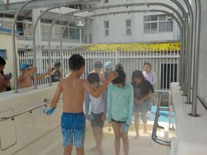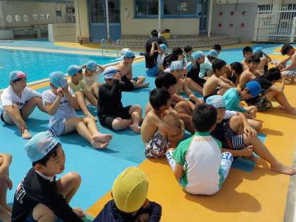 昨日、今年度初めてのプール学習を行いました。昨年度プール学習をすることができなかったため、久しぶりのプールに大喜びでした。